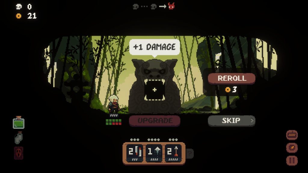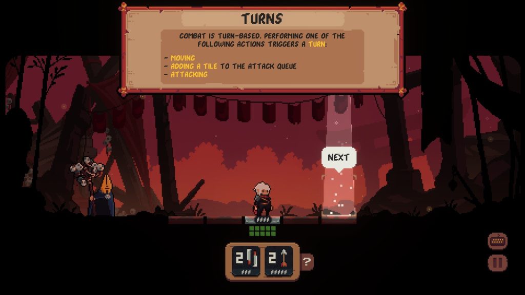 看,敌人必须使用自己的图块以及移动和攻击。因此,你发起攻击的顺序非常重要,不仅是战略上的,而且因为发起攻击可能会让你在敌人的攻击连接之前获得攻击。此外,队列中的每个方块都会在敌人出发之前按顺序触发。我承认这花了我最长的时间来思考,但一旦我明白了,我就开始真正感激它。您可能不会考虑的另一个关键机制是跳过回合,这可能会将敌人带入攻击范围。