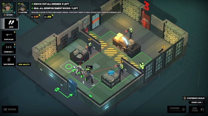 您现在可能想知道实际的游戏玩法如何,这很简单 - 一切都按其应有的方式进行。说真的,这里的战斗非常干净整洁,但我会说我在主要战役中只玩了大约三个小时,所以我没有太多机会看到我能把事情搞砸到什么程度。与策略型游戏一样,它是回合制的,并具有一些用于升级你的能力的轻型角色扮演游戏元素。当你开始一个房间时,你正在为突破做准备,在冲锋之前将你的角色设置在你想要的位置。一旦你准备好开始大屠杀,你可以在任何时间以任何你想要的顺序突破,并发送你认为合适的单位。敌人通常使用激光瞄准器,这样你就可以知道某人在追赶哪些单位,并且当你在回合中移动时,敌人可以改变他们的首选目标。甚至有些敌人如果你穿过他们的道路,即使轮到你了,他们也会发起攻击。如果你对行动有点不确定,并且在你完成行动后敌人已经排好队,你可以使用预见来看看轮到敌人行动后会如何结果。