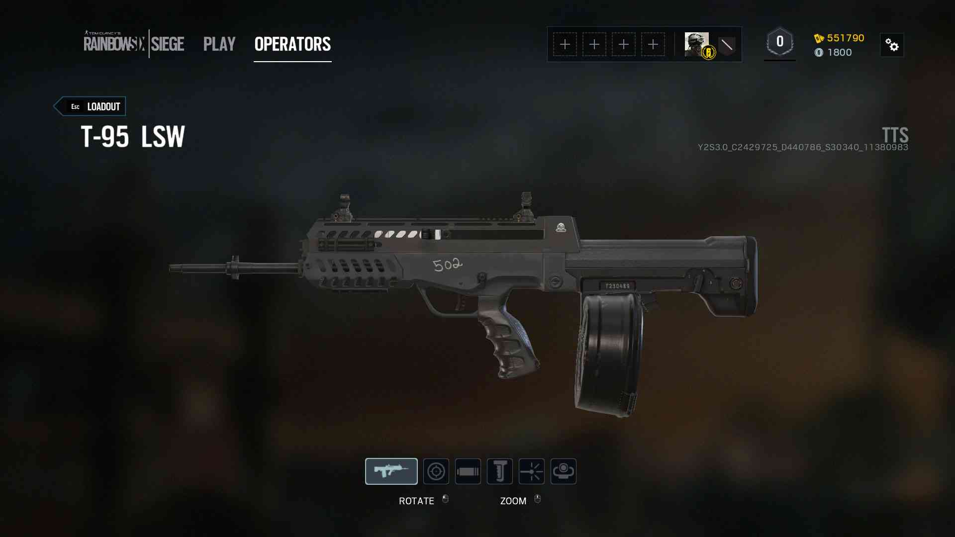 Ying的T-95 LSW是一款轻机枪,弹匣容量大,射速不错。其快速的装填时间和高伤害使其成为持续交火的理想选择,使鹰能够在交战中施加持续的压力。