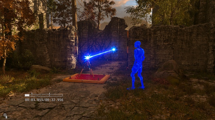 将其转化为实际的谜题解决几乎不可能更顺利,总共六个主要机制的工具只是勉强滴灌给你。大部分工作将集中于使用随身携带的连接器连接彩色激光器。虽然只有红色和蓝色,但如此简单的概念的丰富实现方式是充分利用所提供的拼图部件的关键。盒子、干扰器和风扇只是增加了复杂性,但真正的威胁是记录功能,它会记录玩家的动作以及所有可移动工具的放置。第一次引入时,一切都非常稀疏,当你拼凑出如何在不同的中心世界中使用这些工具时,要采取温和但彻底的步伐。主游戏中有三个中心,以罗马、埃及和中世纪为主题,这三个中心在整个游戏过程中最多只有两种需要掌握的工具。现在,这些谜题虽然大多基于逻辑,但也可能包括一定程度的平台和时不时出现的一些愚蠢的动作。