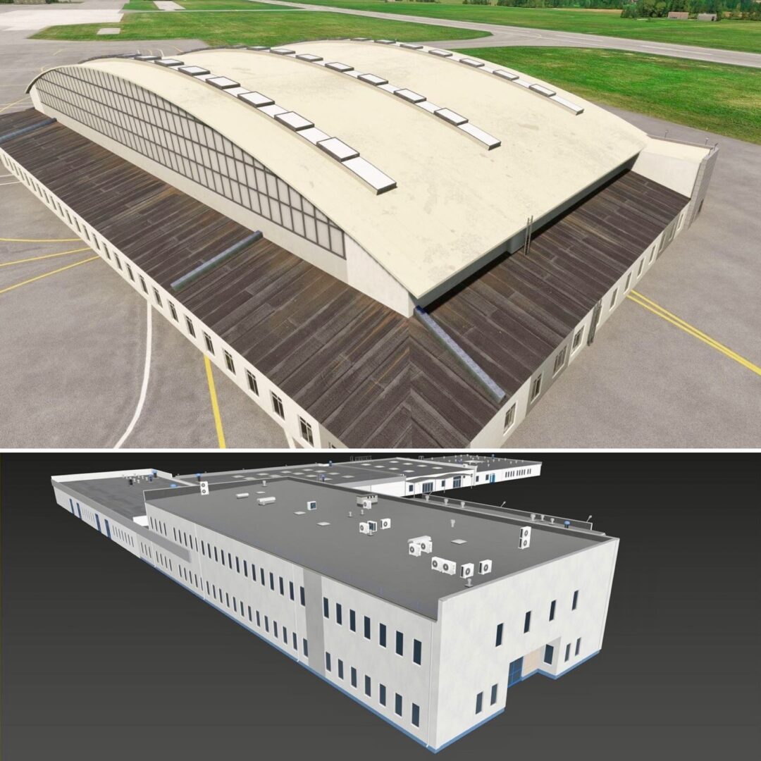 1 号机库、较小的南部机库、旧货运站和多个技术建筑现已完工并放置在模拟中。空中交通管制塔目前正在进行中,建模正在进行中。