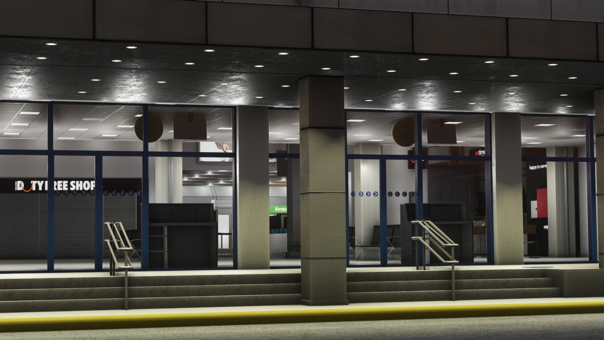 - 非常详细的机场建筑,带有两个终端的半透明窗户,均具有真实的室内设计。