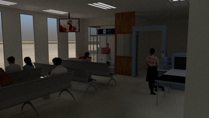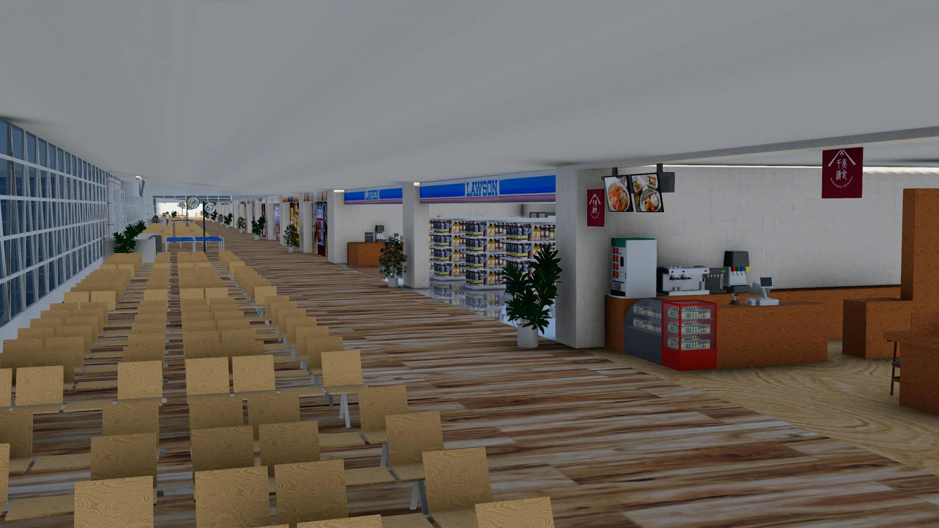 我们还注意到,开发商决定包括部分内部空间,特别是从停机坪可以看到的登机等候区。航空公司工作人员准确地穿着冲绳 kariyushi 衬衫。