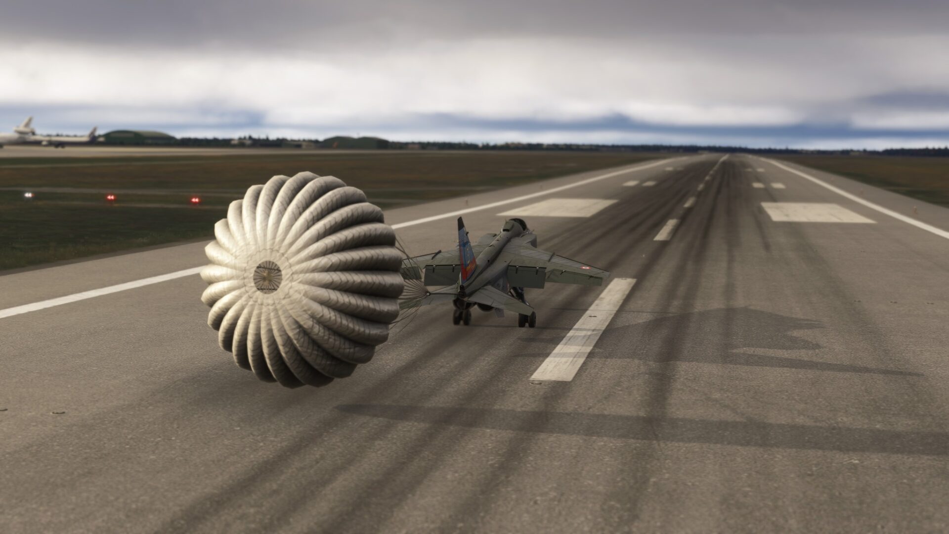 MSFS 2024 还配备了可以丢弃的阻力伞,并将作为一个单独的物体留在跑道上,以增加真实感。