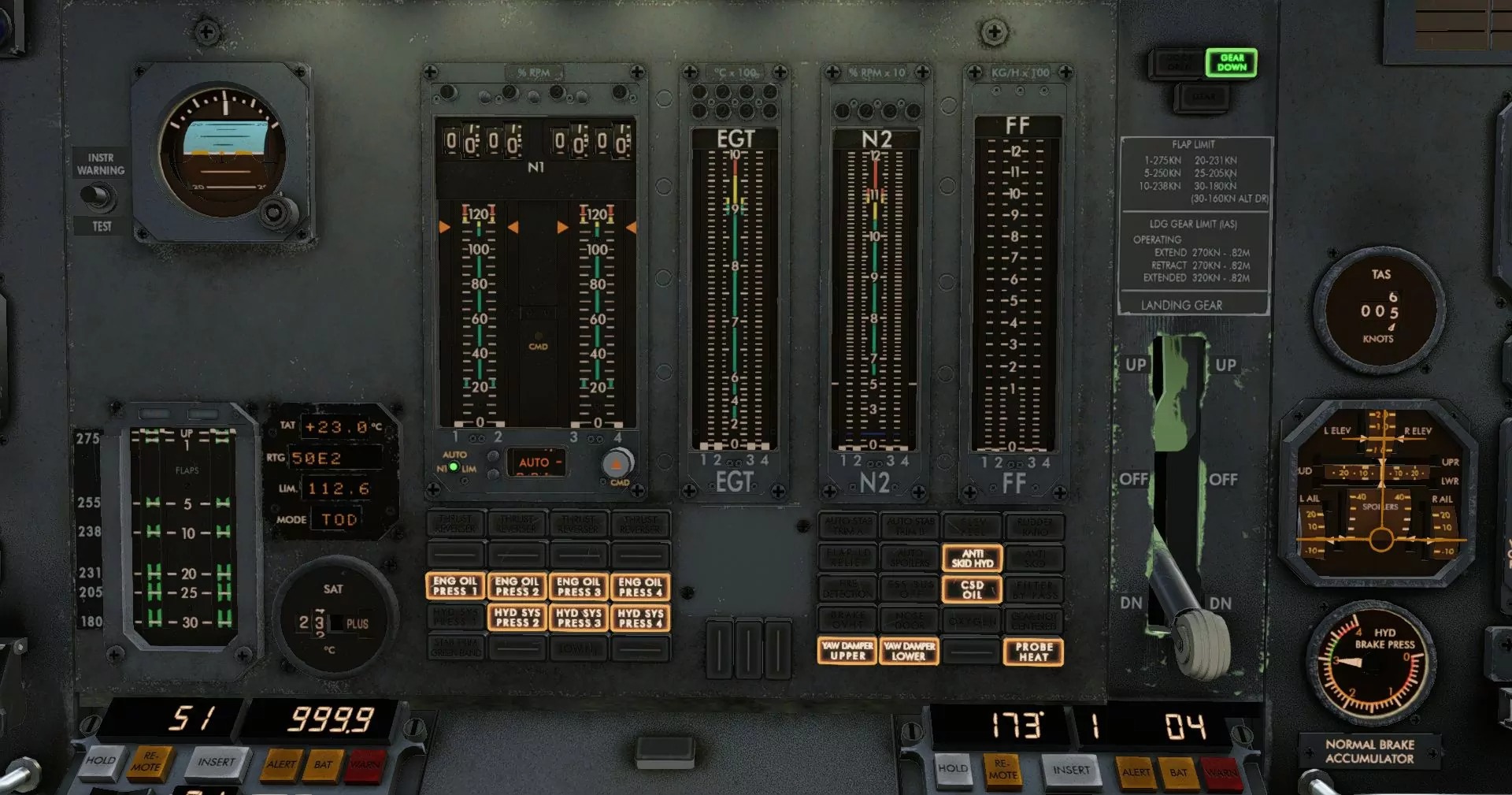 - 四个独立的液压系统采用真实压力逻辑建模。