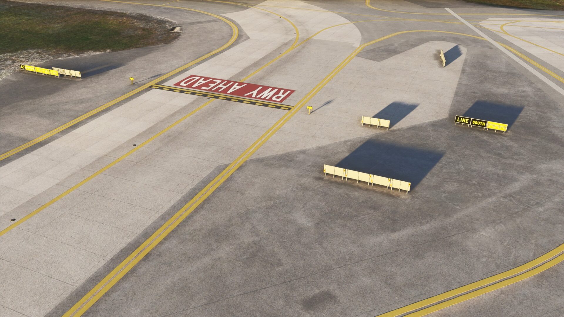 我们可以看到公共汽车、冬季设备、跑道和滑行道标志。