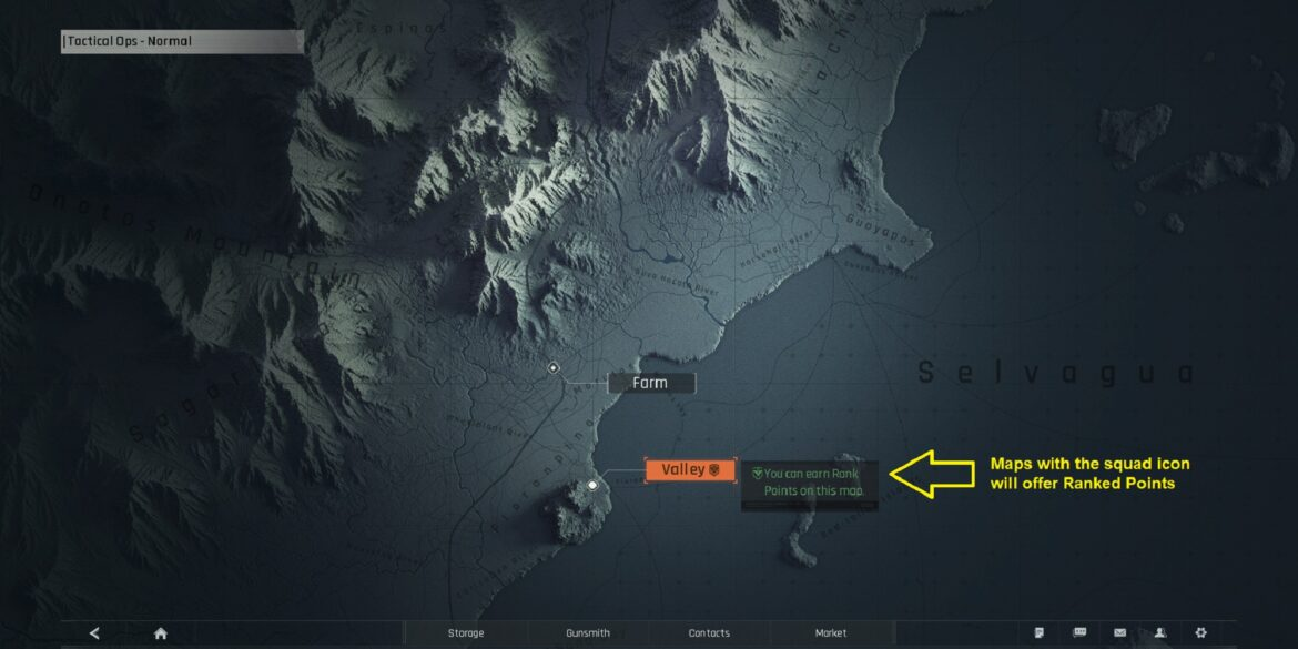 当您在挑选球员之前选择地图时,可以赚取排名积分的地图会在其名称旁边突出显示小队图标。这些地图因等级而异。