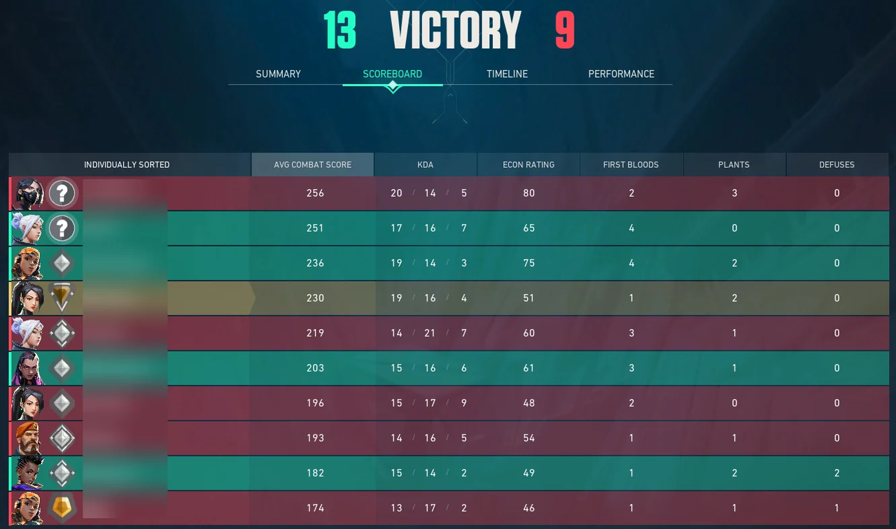- 个人表现:统计数据诸如杀戮,死亡,助攻,尖峰植物,削减以及对团队的总体贡献。