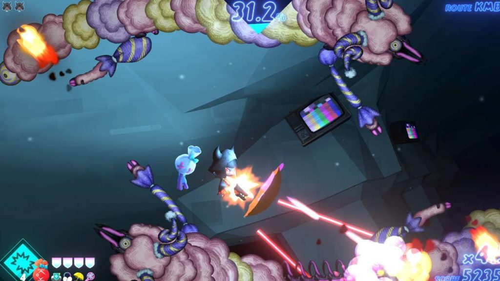 在程序生成的競技場中飛行,在 360 度戰鬥中消除扭曲版本的年輕恐懼,例如可怕的牙醫工具、西蘭花怪物和侵略性的吉娃娃食屍鬼。在每次運行開始時,結合三種武器和三種配件來優化雷姆的攻擊,收集靈魂以取得進步並解鎖升級。利用加布醬的特殊能力幫助扭轉局勢,對抗幽靈。