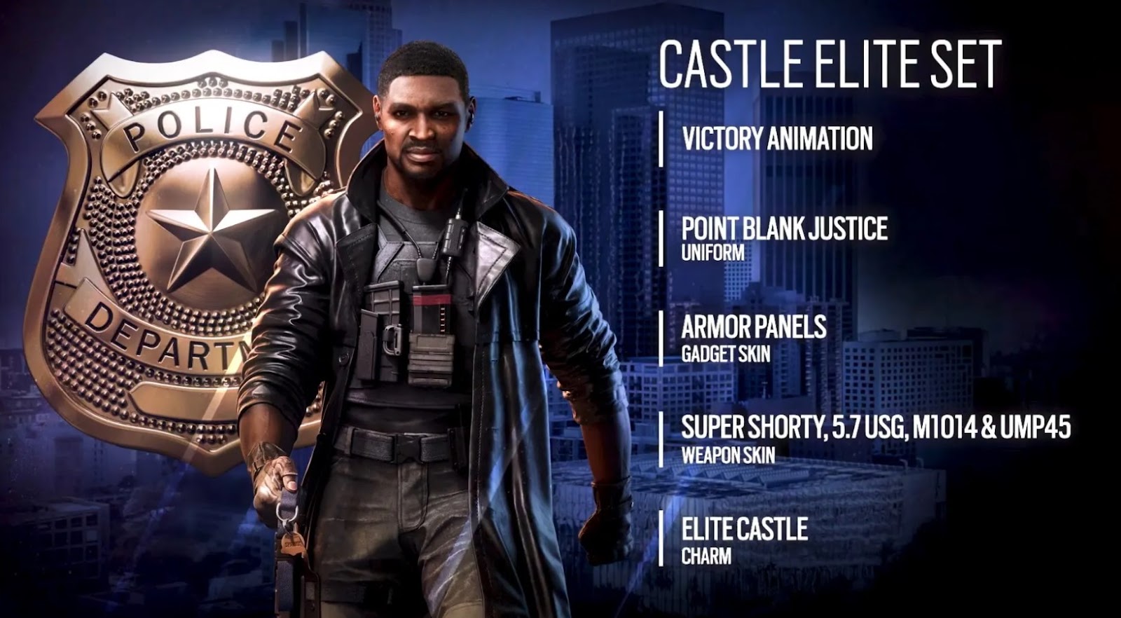 Castle 是《圍攻》中最引人注目的角色之一。 Point Blank 皮膚讓 Castle 回到了他在 FBI 的時光——售價 1,620 積分。
