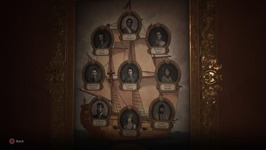 這個房間裡的所有謎題都圍繞著神秘的藝術家團體“阿斯塔特藝術家殖民地”和“龐恰特雷恩海盜”展開,失憶症患者伊麗莎白·佩羅西聲稱自己是該團體的成員。