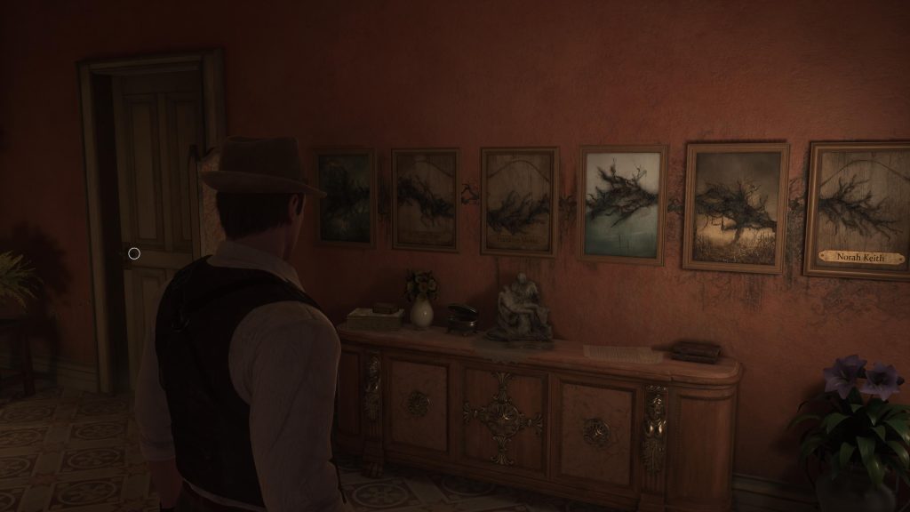 在一面牆上,你會發現一張包含阿斯塔特藝術家殖民地所有成員的大照片,在另一面牆上,有六幅畫被奇怪的黑色腐爛所覆蓋。這些畫作都有名字,其中一半是阿斯塔特藝術家群體的成員;其他三個只是隨機名稱,對謎題或故事沒有任何意義。