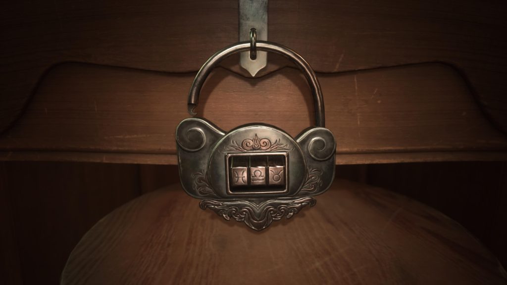 您在佩索西房間的主要目標是打開掛鎖的梳妝台抽屜,其中包含您要尋找的盤子。要打開抽屜,您首先需要找出由三個星座組成的組合。