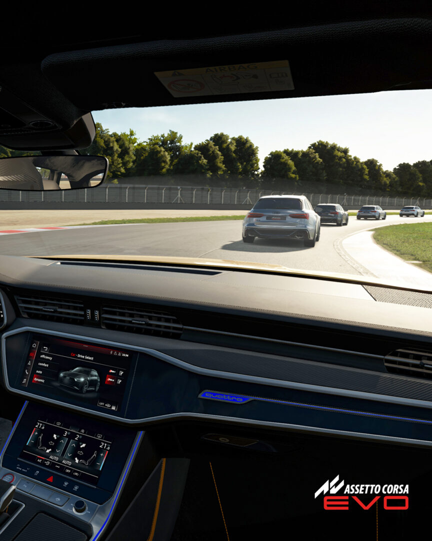 奧迪 RS 6 配備先進的數字儀表板、運動型 RS 平底方向盤以及中控台上的雙觸摸顯示屏。機艙還採用黑色皮革和橙色六角形縫線製成,提供優質的設計,讓人想起現實生活中的對應物。目前,《神力科莎 EVO 更新 0.3》尚無發布日期。