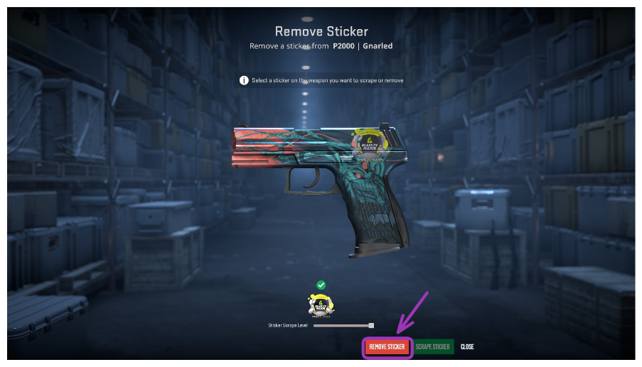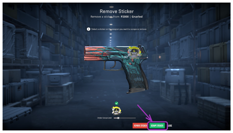 CS2 將要求確認。此時,貼紙要么褪色(刮擦一次後),要么完全損壞。這CS2 貼紙刮除說明這個過程說明了為什麼玩家在確認之前必須思考。該過程是免費的,但不可逆轉。