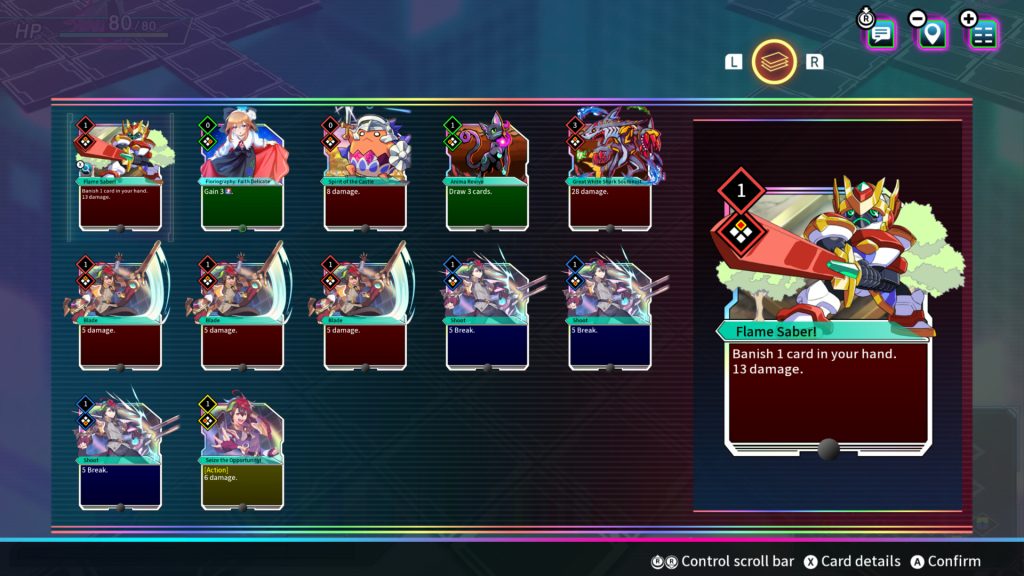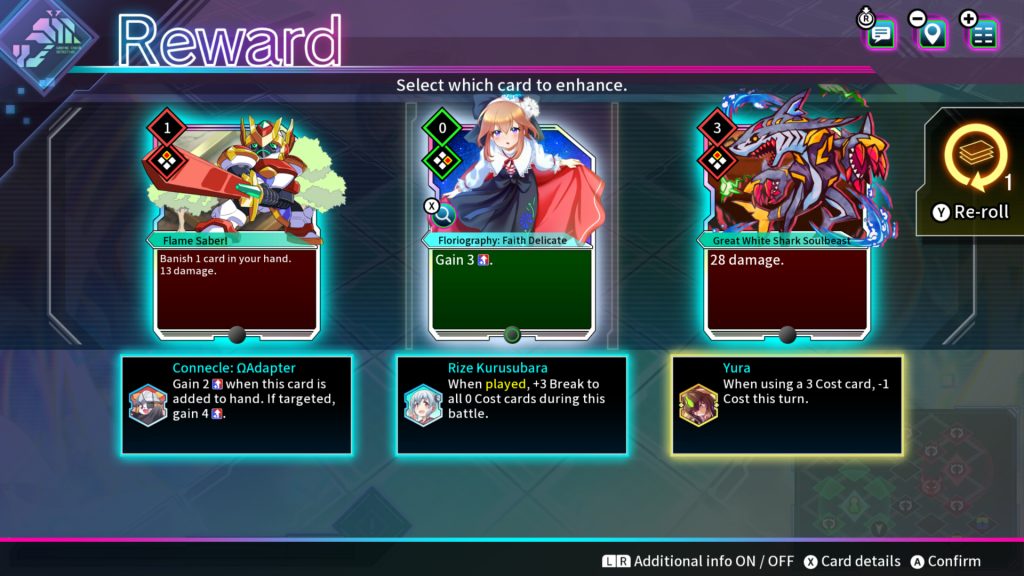 但也許您是那種想要了解有關 Card-en-Ciel 遊戲機制的更多細節的人?嗯,有一個叫做區域征服的系統。通過擊敗地牢中任何房間的所有敵人,您可以從三個選項中進行選擇 - 恢復、增強或定位。