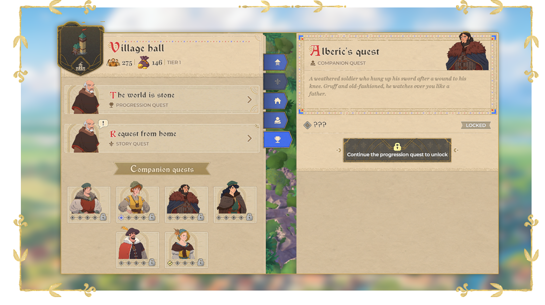 最後一級的同伴和建築物現在將被解鎖,讓他們現在獲得將在遊戲後期內容中使用的聲望。還添加了一個全新的旁白和任務面板,以便您可以跟踪您的任務並閱讀對話。