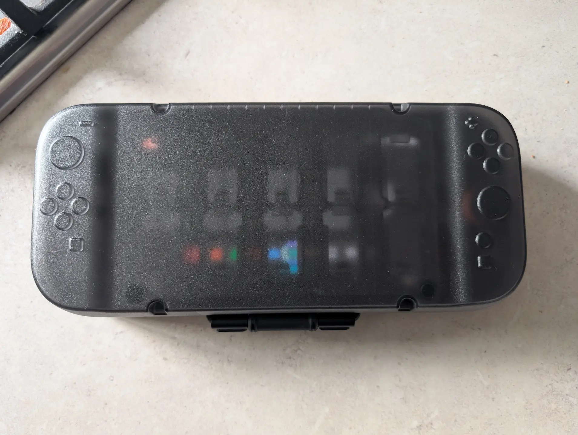 說到堅固,加上蓋子,您可以輕鬆地將其放入背包中,而無需擔心。在它為屏幕提供的保護和外殼背面提供的蓋子之間,我不擔心控制台會損壞或 Joy-Con 會分離。它還可以讓您在其中存儲一些遊戲,因此它既具有保護性,又具有多功能性。將蓋子固定到位的鬆緊繩也很棒,並且是比 ROG Ally X Killswitch 更好的解決方案,後者需要您將蓋子打開和關閉手持設備,感覺有點像每次都會打破它。