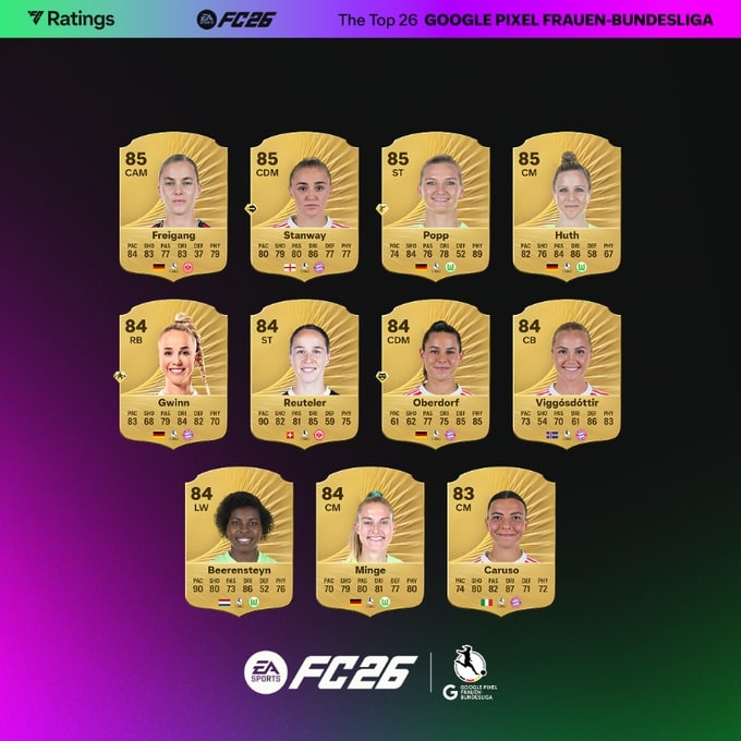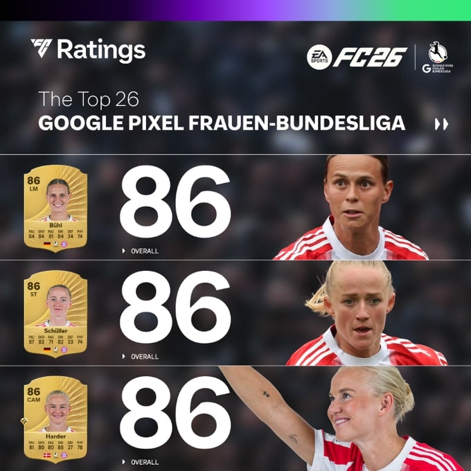 本週早些時候,Electronic Arts 公佈了其熱門足球模擬器 EA Sports FC 26 下一期中評分最高的 26 名男女球員。今天,他們進一步細分了評分列表,詳細介紹了 MLS、NWLS、男子德甲和女子德甲的最佳球員。