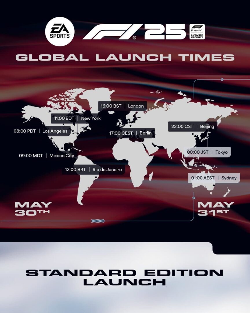 對於購買標準版的人,F1 25將在以下時間啟動: