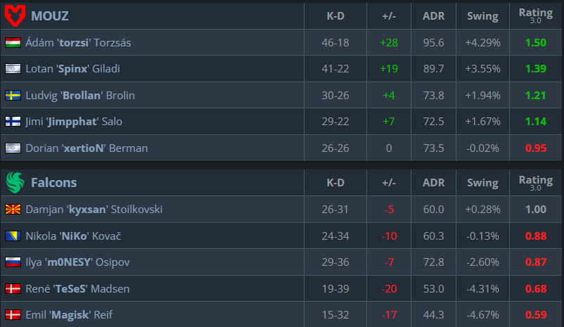 獵鷹將迎戰莫茲在四分之一決賽中2025 年電子競技世界杯,由於季后賽是單敗淘汰賽,失敗的球隊將不得不回家。獵鷹在這裡證明添加'恭介'對他們來說是正確的選擇,而莫茲是本次錦標賽的熱門之一。這兩支球隊上次交鋒是在 IEM 達拉斯 2025, 和莫茲贏得了比分2-0。