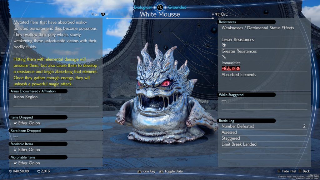 這兩個野獸般的斑點非常耐用,如果你不小心的話,只需幾次攻擊就可以震撼你的隊伍。為了打倒白色慕斯,你需要用各種元素魔法對它們施加壓力,因為它們在被擊中一定次數後會獲得對元素的抵抗力。最終,如果你經常使用某種元素,它們會吸收它並釋放出毀滅性的魔法攻擊。這種攻擊的打擊非常嚴重,如果你達到了建議的水平,那麼你的團隊很可能會發現自己陷入困境(如果他們是攻擊的接收端)。