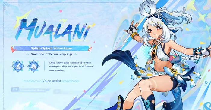 Mualani 將成為 Natlan 的第一位 5 星級用戶,同時也是一位 5 星級 Hydro Catalyst 用戶。穆拉尼是溫泉人民的戰士,也是一家水上運動商店的老闆,充滿活力和良好的氛圍。她將可以使用自己的交通工具,稱為鯊魚衝浪板,讓她滑過陸地、水域,甚至熔岩。她的元素技,在某種程度上,讓我想起了夜闌的元素技。騎著這個衝浪板時,你可以“標記”敵人,這樣當你下次攻擊他們時,它就會發射鯊魚導彈。這是一種將機動性轉化為進攻性的相當新穎的方式。她甚至可以為她的爆發發射一枚巨大的鯊魚導彈,它和你想像的一樣可愛。