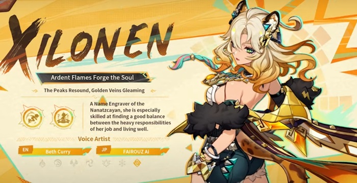 Xilonen 是一位備受尊敬的鐵匠和 Nanatzcayan 的名字雕刻師,他將以五星級地理劍使用者的身份抵達。希洛寧專注而勤奮,經常穿著溜冰鞋和耳機在迪斯科舞廳打架,並依靠音樂保持穩定並繼續前進。她的主要移動技巧確實是她的溜冰鞋,讓她可以毫無問題地滑上陡峭的懸崖壁,她甚至有一種特殊的方式可以保持棲息在她想休息的任何表面上!如果您想欣賞納特蘭的風景,她是您的最佳選擇。但這並不意味著她不能在戰鬥中使用一種叫做地理採樣器的東西來消除傷害。如果您的團隊中還有火焰兵、水兵、冷凍兵或電兵等其他角色,這三個地理採樣器將在附近敵人進入夜魂祝福狀態後降低其元素抗性。如果你至少有 2 個採樣器運行不同的元素,她的普通攻擊將給予她首先打開它們所需的夜魂點數。話雖如此,對於僅限地理的團隊來說,她仍然具有良好的形式和功能,因為她的普通攻擊和突入攻擊都會獲得傷害增益。 Xilonen 的天賦可以讓 Nightsoul Transmissions 恢復燃素,而 Burst 則可以通過採樣器盤中混合的其他元素來恢復其他隊員的 HP,Xilonen 正在成為引領 5.1 衝鋒的獨女秀。