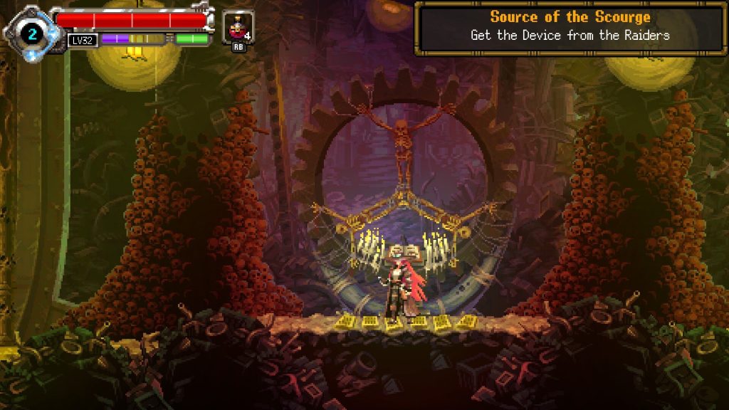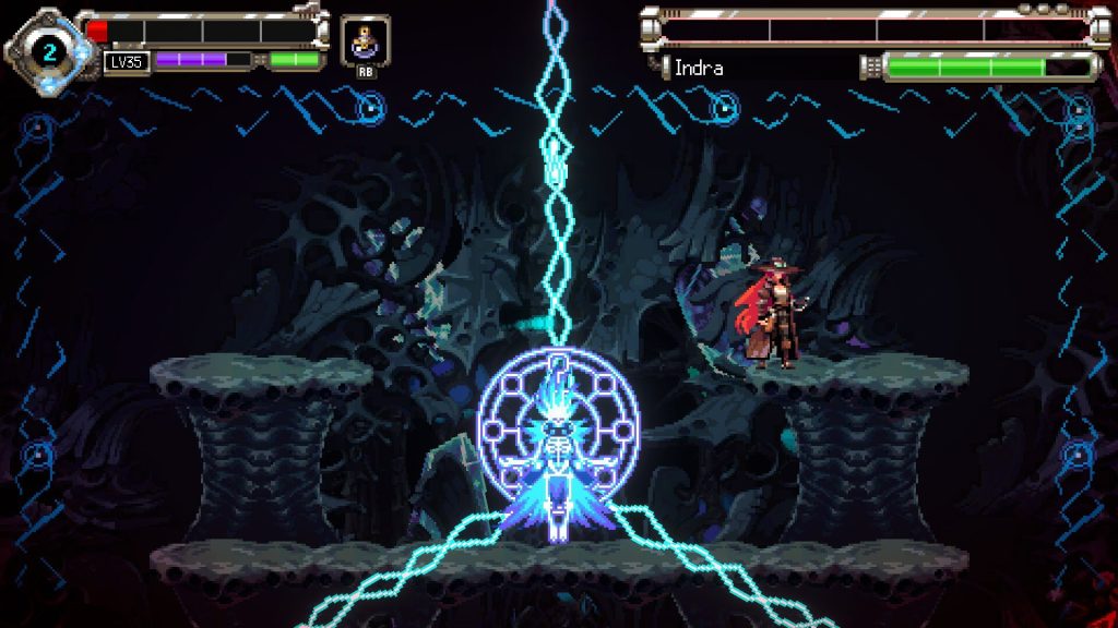 與該類型的許多其他例子一樣,有許多不同的環境可供探索,從發條工廠到悶熱的熔爐,甚至是被毒雨污染的垃圾場。我很欣賞這裡展示的創造力,因為遊戲的任何部分都與其他部分完全相似,他們甚至在遊戲中途加入了快速旅行。我最大的問題是,儘管遊戲很漂亮且多樣化,但這款銀河惡魔城的平台元素感覺有些不成熟。一旦你打敗了老闆,就沒有太多動力返回該地區。更糟糕的是,我覺得 Aletheia 獲得的能力並沒有在 Boss 戰中得到很好的體現。只有少數情況是你絕對需要新能力才能獲勝的,但這種情況很少見。