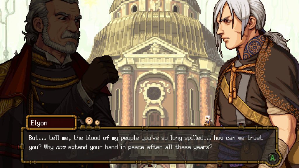 通常情況下,我不會真正考慮大多數銀河惡魔城的情節。畢竟,我是在《超級銀河戰士》的陪伴下長大的,它是該類型的標誌性支柱之一,而且這是一款幾乎沒有對話或文字來講述故事的遊戲。相反,這一切都是通過視覺講故事來講述的。雖然我非常喜歡這種風格,但《Gestalt: Steam & Cinder》很快就脫穎而出。簡而言之,如果《格式塔》是一系列奇幻小說,我會購買並閱讀所有這些小說。文筆、人物和曲折的情節都很好。