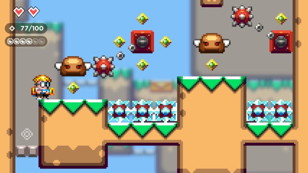 雖然原版遊戲相對較短,但我覺得 Atooi 足以彌補《Hatch Tales》中的不足。它的大小大約是第一款遊戲的兩倍。首先,您將在 8 個世界中進行遊戲,分為 6 個常規關卡、6 個可解鎖的支線任務關卡和 1 個 Mutant Mudds 復古關卡。還有他們所謂的塔樓關卡,但這些基本上只是解鎖與冰凍巨人納扎爾的最終 Boss 戰鬥的華麗門面。