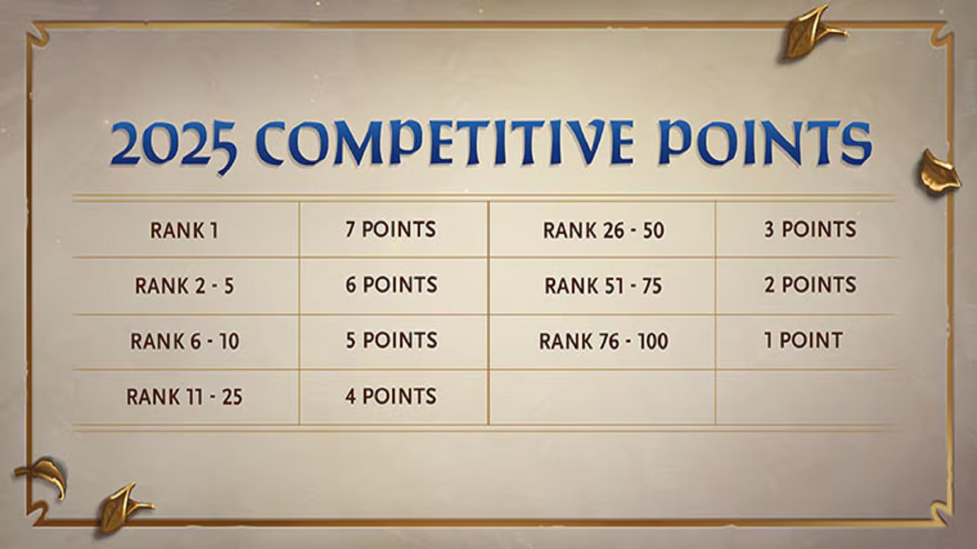 - 所有資格賽期的全球前 3 名競爭積分獲得者(3 名玩家)