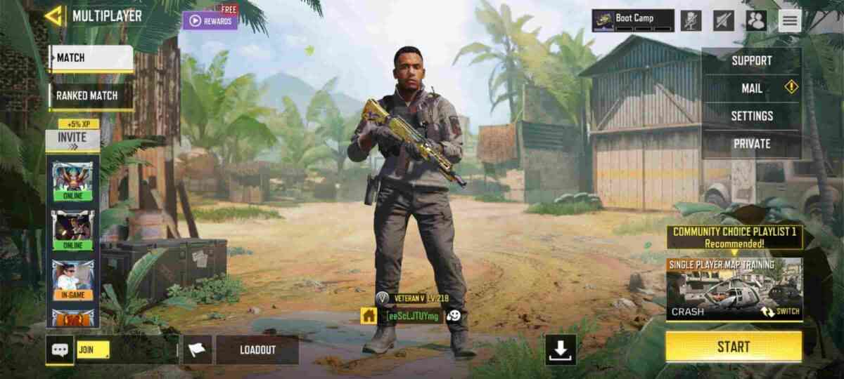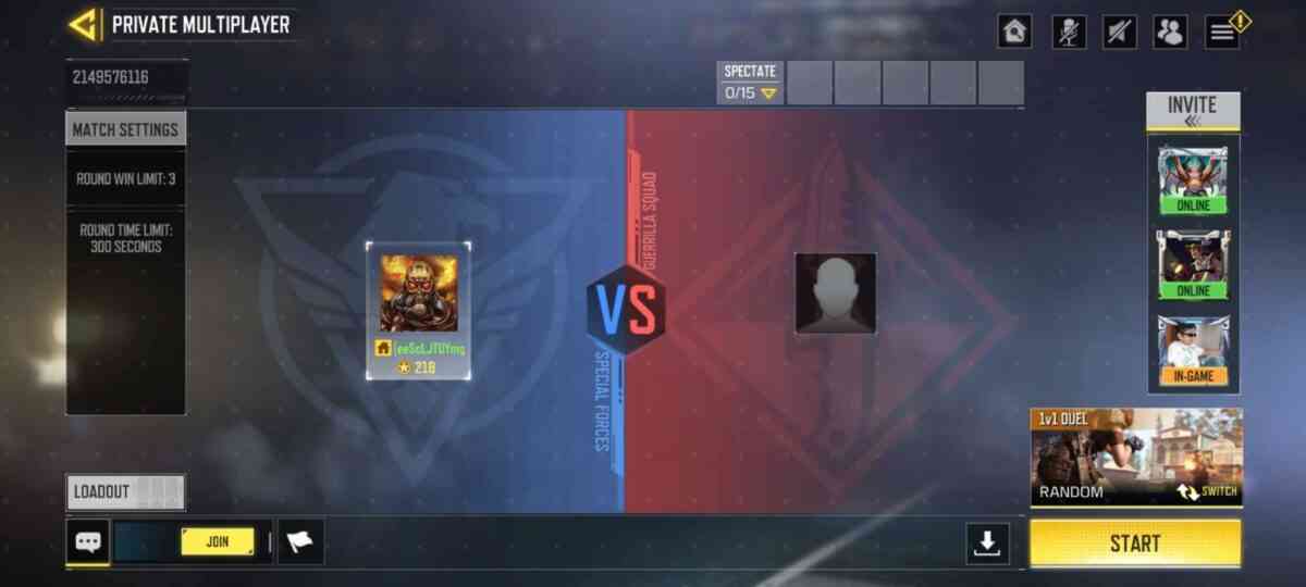1v1比賽未在遊戲菜單的選項中列出。因此,要在 COD Mobile 中進行 1v1 遊戲,您必須創建一個獨特的私人大廳並邀請您的對手參與。