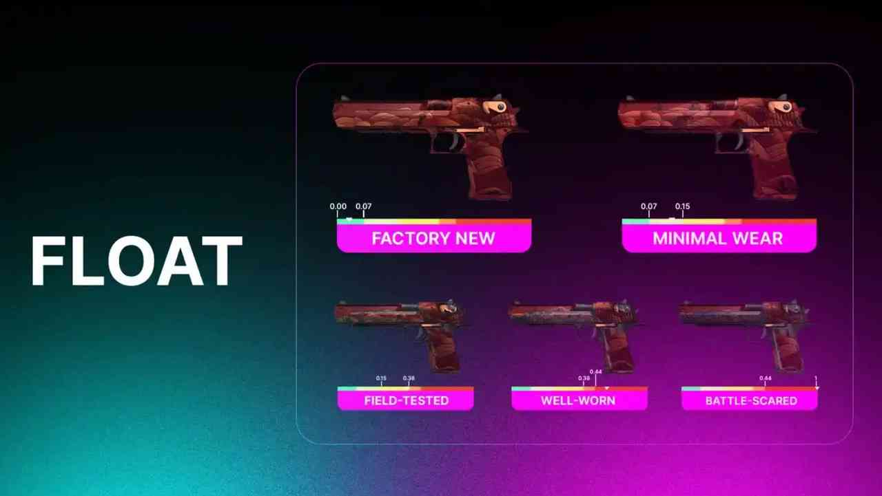 浮點值是介於0.00和1.00這決定了皮膚的磨損程度。較低的浮子更乾淨、更理想。