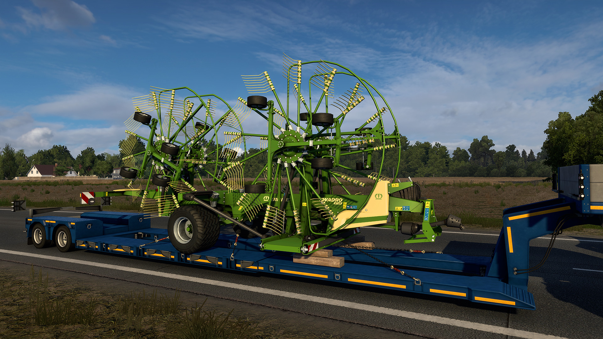 這些歐洲卡車模擬 2 和美國卡車模擬 DLC 包含一整套強大的、官方授權的 KRONE 品牌農業機械,從割草機和打包機到飼料收割機和貨車。該擴展擁有新的貨物類型,每台機器都通過專用拖車運輸,這提出了新的交付挑戰,無論您在大西洋的哪一邊運營。