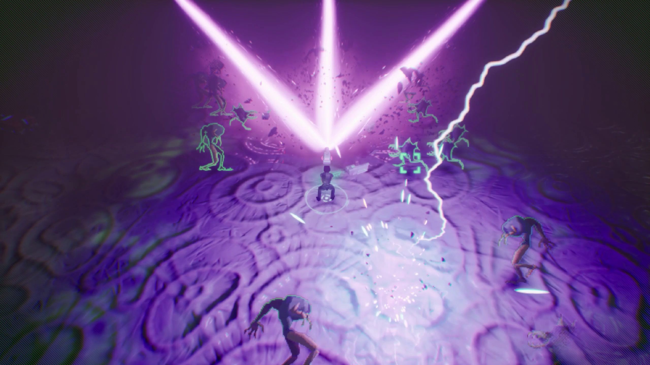 在《猛攻》中,你不再是操縱砲塔並進行最後的抵抗,而是一個行走的傷員,一個搖搖晃晃地走來走去的受傷士兵。你周圍是漂浮的武器,隨著你的探索而升級,其工作原理完全符合你的預期:使用你從倒下的敵人和箱子中收集的經驗值。
