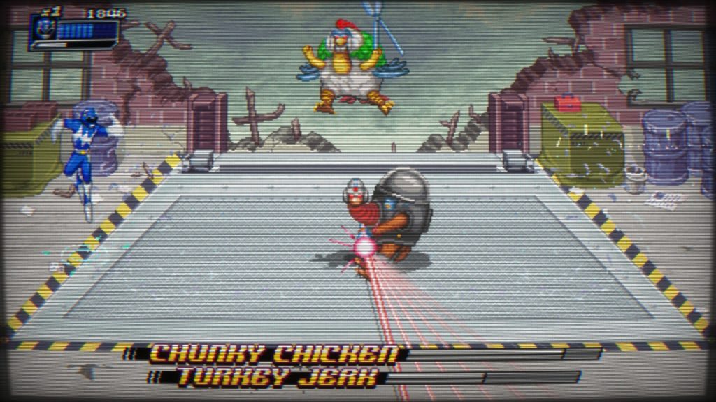 為了紀念 Robo Rita 和 Rita Repulsa 的團隊合作,甚至還有一場 Boss 戰,同時對抗兩個敵人——矮胖雞和火雞混蛋!前者像羽毛剪刀一樣傳送,而後者則投擲炸彈並旋轉以進行毀滅性的激光攻擊。正如你所預料的那樣,最後的 Boss 戰是對陣相當令人惱火的機器人麗塔,稍後會詳細介紹。