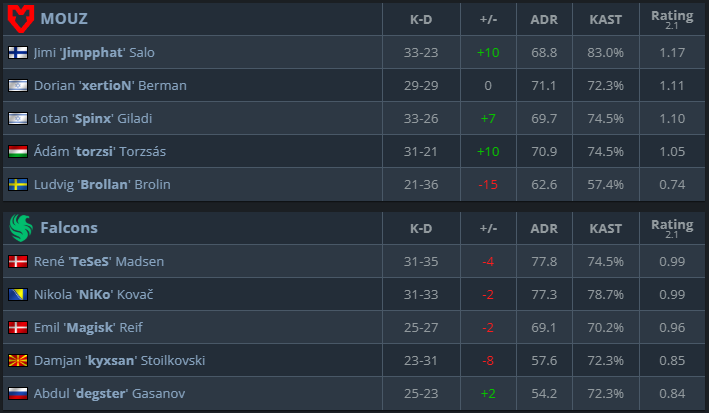 這一次,在四分之一決賽中對陣玩家軍團,他們徹底摧毀了對手2-0 比分,他們打的兩張地圖總共只輸了7局,而且自從上次與同一對手的一場勢均力敵的比賽以來,他們似乎學得很快。'm0NESY'帶來他的數據並證明改變陣容是正確的選擇'尼科'似乎很高興再次與他一起比賽,並且擁有最好的步槍手之一的好心情會給你帶來毫無疑問的結果。'TeSeS'似乎每次都會得到更好的狀態,練習是有回報的。