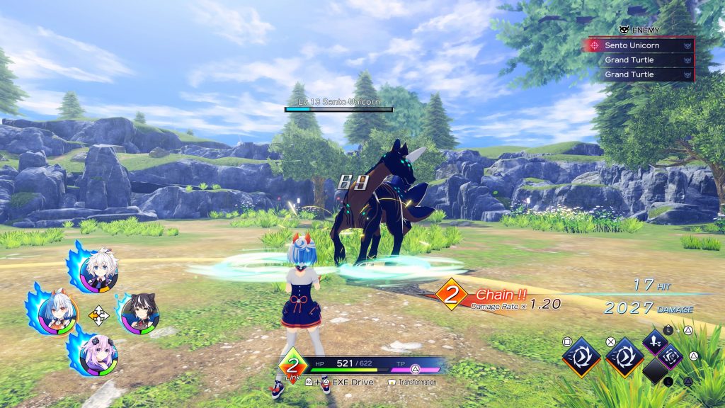 我已經提到過《Neptunia Game Maker R:Evolution》大量借鑒了《Neptunia Sisters vs Sisters》。這種比較最貼切的莫過於遊戲的戰鬥。 Game Maker R:Evolution 再次擺脫了回合製的根源,認為適合以類似於 SvS 的方式進行實時戰鬥。幸運的是,並非一切都保持不變。 Game Maker R:Evolution 修復了 SvS 中一些更嚴重的錯誤,並做出了一些改進,例如刪除 AP 系統和允許四人聚會。然而,無論改進與否,戰鬥仍然不是很引人注目。