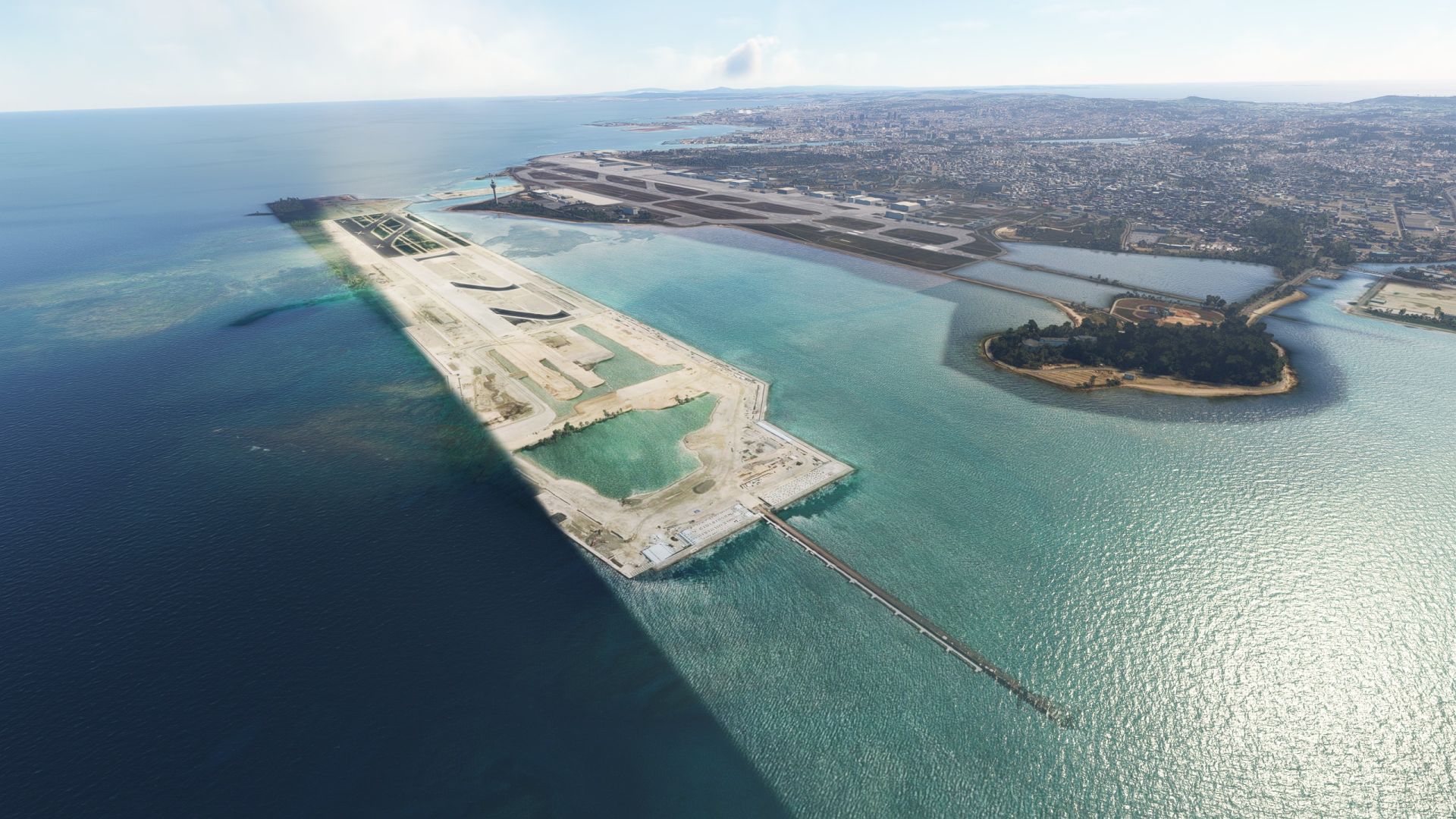 不僅2020年在人工島上啟用的第二條跑道不完整且無法使用,而且機場周圍的水罩也全部亂七八糟,自從模擬器發布以來就一直如此。