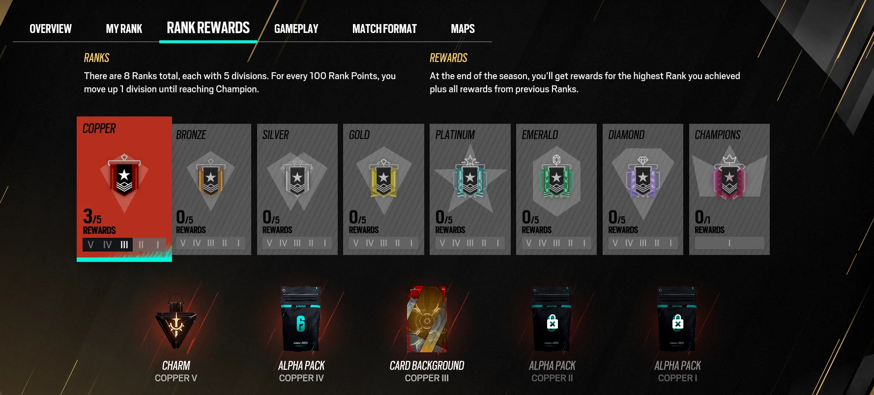 為了獲得這些獎勵,玩家必須參加排名比賽並努力獲得盡可能高的排名。獎勵在賽季結束時發放,可以在遊戲中裝備和展示。
