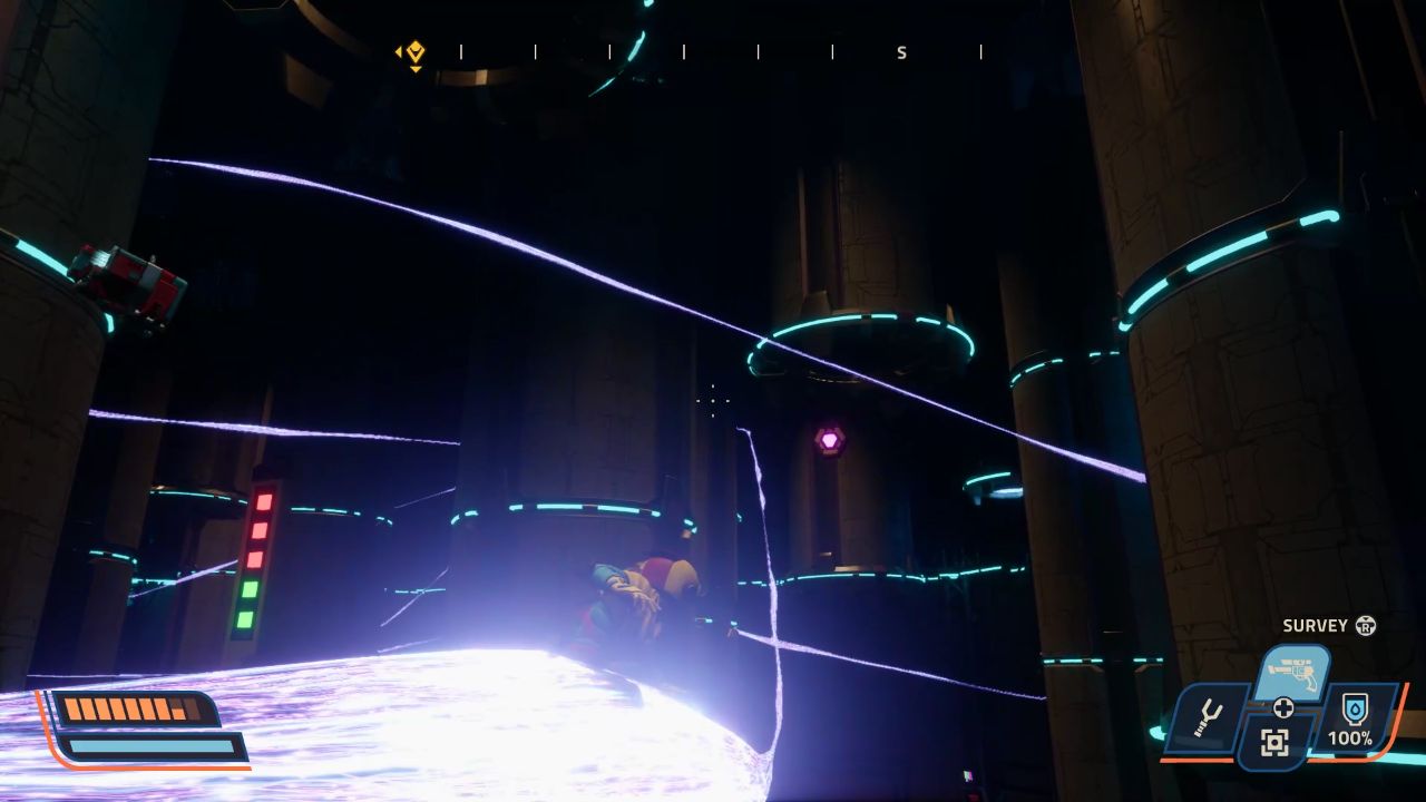如何訪問神殿:你會在上面顯示的地圖上看到斯克拉皮傳送器的位置,你可以使用擒抱和二段跳到達那裡,或者從下面的壁架激活質子軌道。你會看到一個被磁性金屬堵塞的洞穴,你需要使用磁力叉和附近的金屬塊來打破它。打破它,然後進入傳送器。