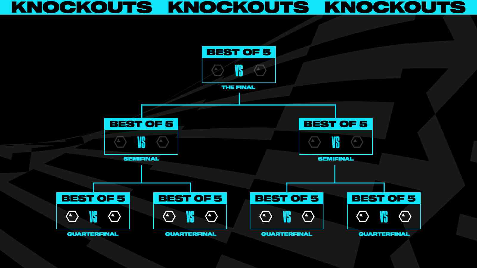 這八支隊伍將被分成兩組,每組四支,進行三局兩勝的雙敗淘汰賽。每個小組的獲勝者以及兩個敗者組獲勝者之間最後機會資格賽的獲勝者將進入括號階段,加入五支晉級隊伍。