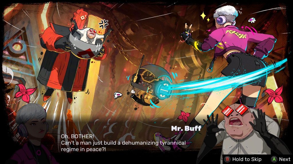 Rakugaki 有點像 Jet Set Radio、Splatoon 和 Blade Runner 的三人組。它非常時尚,並自豪地穿著明亮的顏色。儘管故事發生在一個反烏托邦的未來,自我表達被“Buff 先生”的惡魔技術所榨乾,但這款遊戲卻是歡快、熱情和震撼的。總的來說,我很喜歡它,儘管遊戲因一些小而持久的煩惱而受到阻礙。
