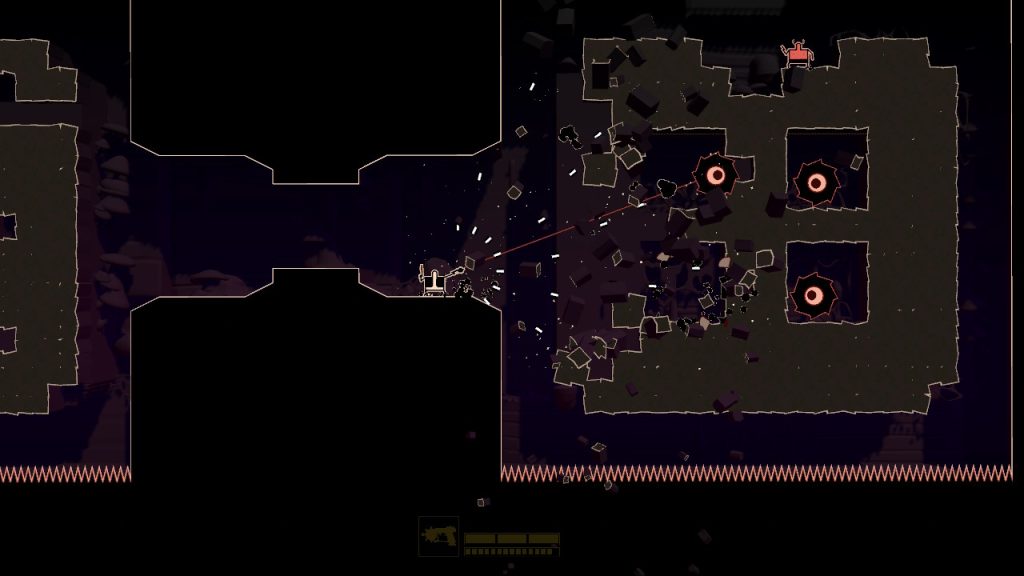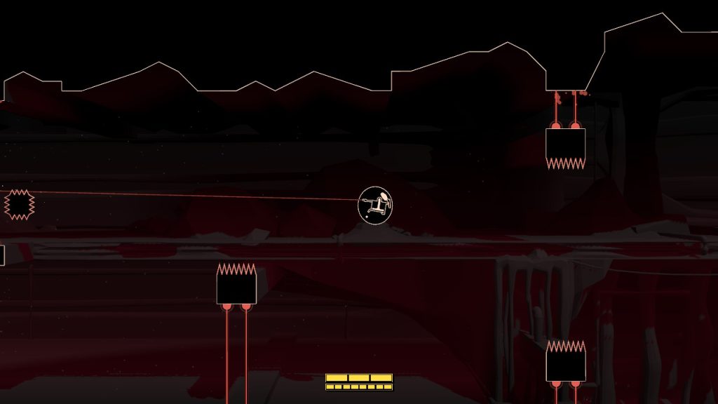 只要你繼續發射你的輔助武器,你就會有一段短暫的飛行時間,這會讓你保持在原地盤旋。訣竅在於你的彈藥有限,補充彈藥的唯一方法就是降落在堅實的地面上。因此,整個遊戲變成了一種微妙的平衡行為,需要管理你的彈藥來對付敵人,並在越來越複雜和危險的關卡中移動。