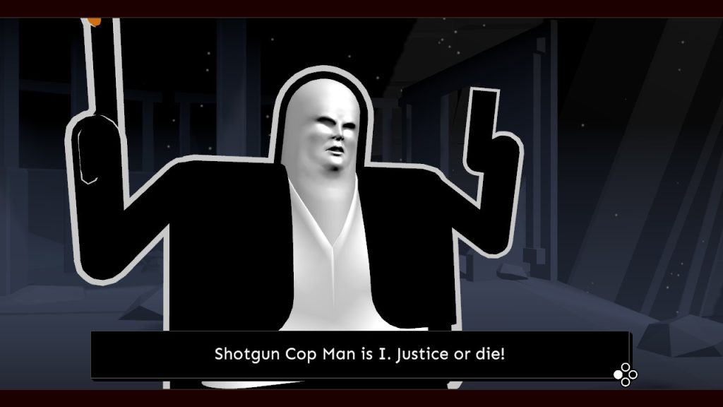 雖然遊戲名義上有一個故事,但講故事實際上並不是遊戲的強項。它更多的是提供一些從一個級別升級到另一個級別的動力,同時提供荒謬的幽默,讓你發笑。你扮演名義上的霰彈槍警察。我不確定這是否是你的名字或頭銜,但無論如何,這實際上並不重要。