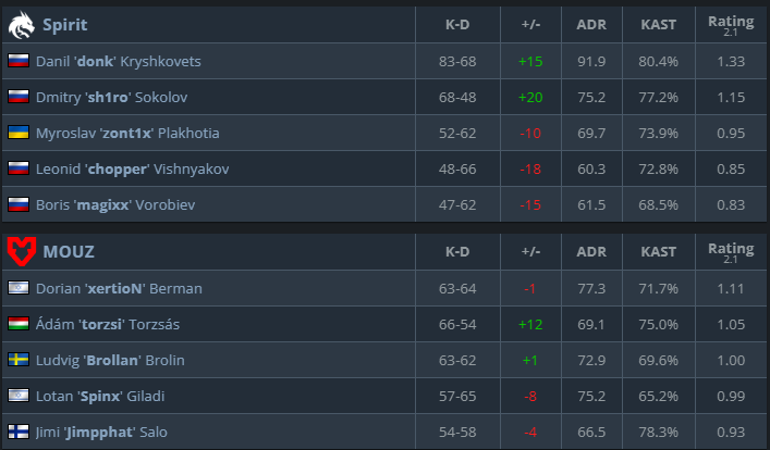 要打開季后賽階段的BLAST.tv 奧斯汀少校,精神將迎戰莫茲在四分之一決賽匹配。這一年來,兩支球隊已經多次交鋒,競爭不斷。最後兩次,莫茲贏得了比分 2-1。這場比賽是最重要的一場,這將是最好的時機精神報復並發送莫茲家。