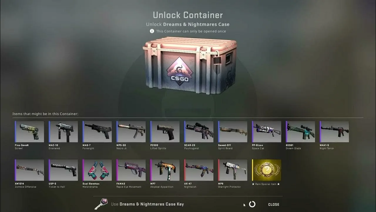 這個箱子包含以下廣受歡迎的皮膚M4A1-S |夜驚,MP9|星光守護者, 和AK-47 | AK-47夜願。而且這裡還能掉落稀有蝴蝶刀|伽瑪多普勒——祖母綠,但145千分之一就會掉落一次。但蝴蝶刀|奧托尼克可以一次獲得11,730 次嘗試。總體而言,刀或手套在 391 次嘗試中可能掉落 1 次。