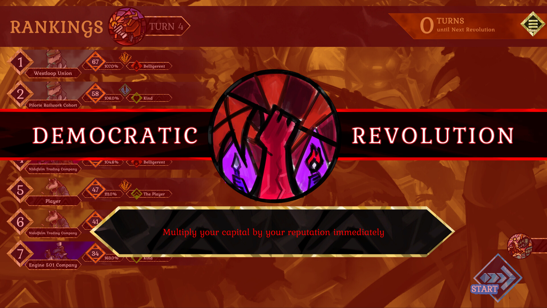 整個過程有一種真正的棋盤遊戲的感覺。每隔幾輪,最薄弱的環節就會被切斷,因此在整個過程中,你都在努力獲得比對手更好的分數,這樣你就不會處於革命的最底層。