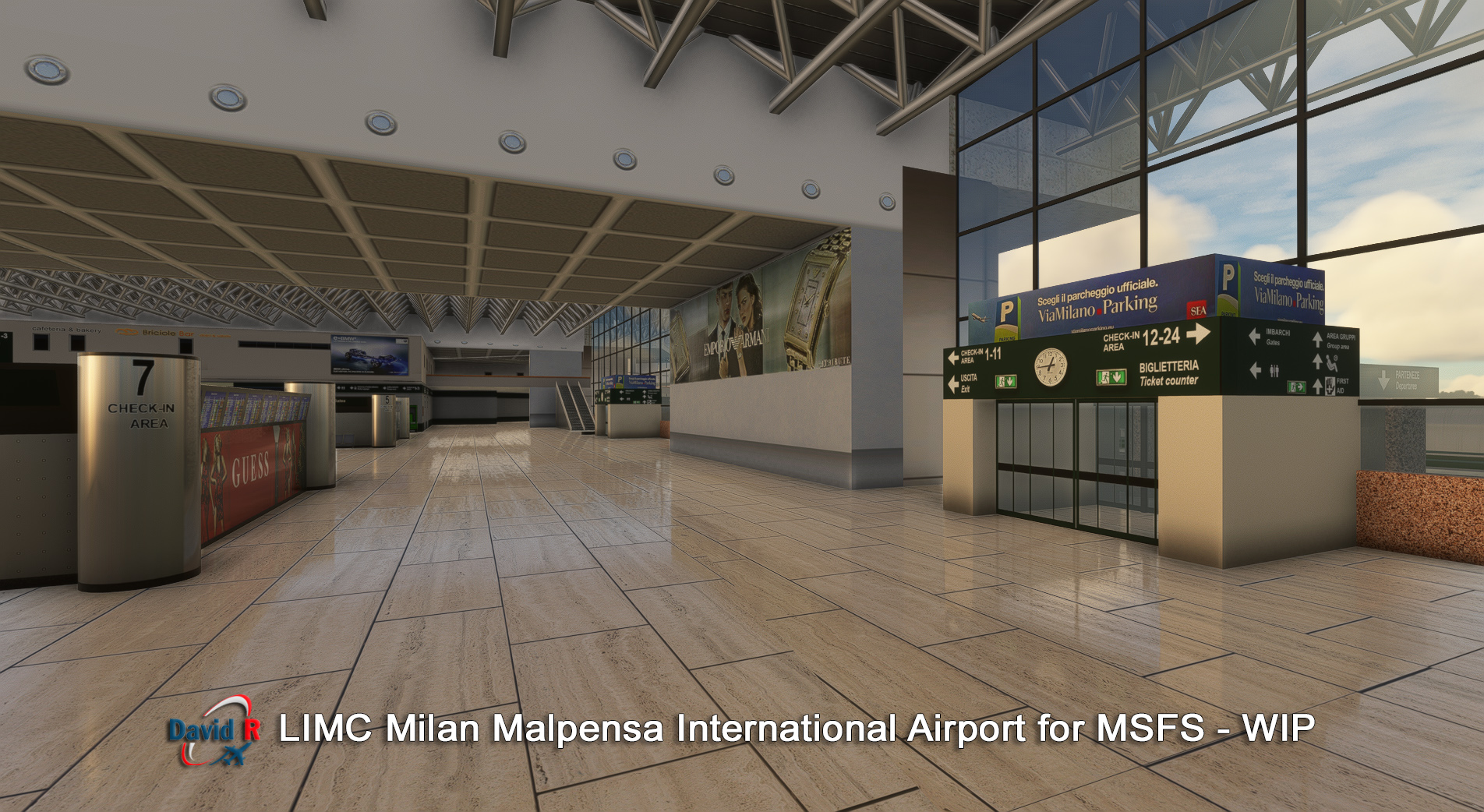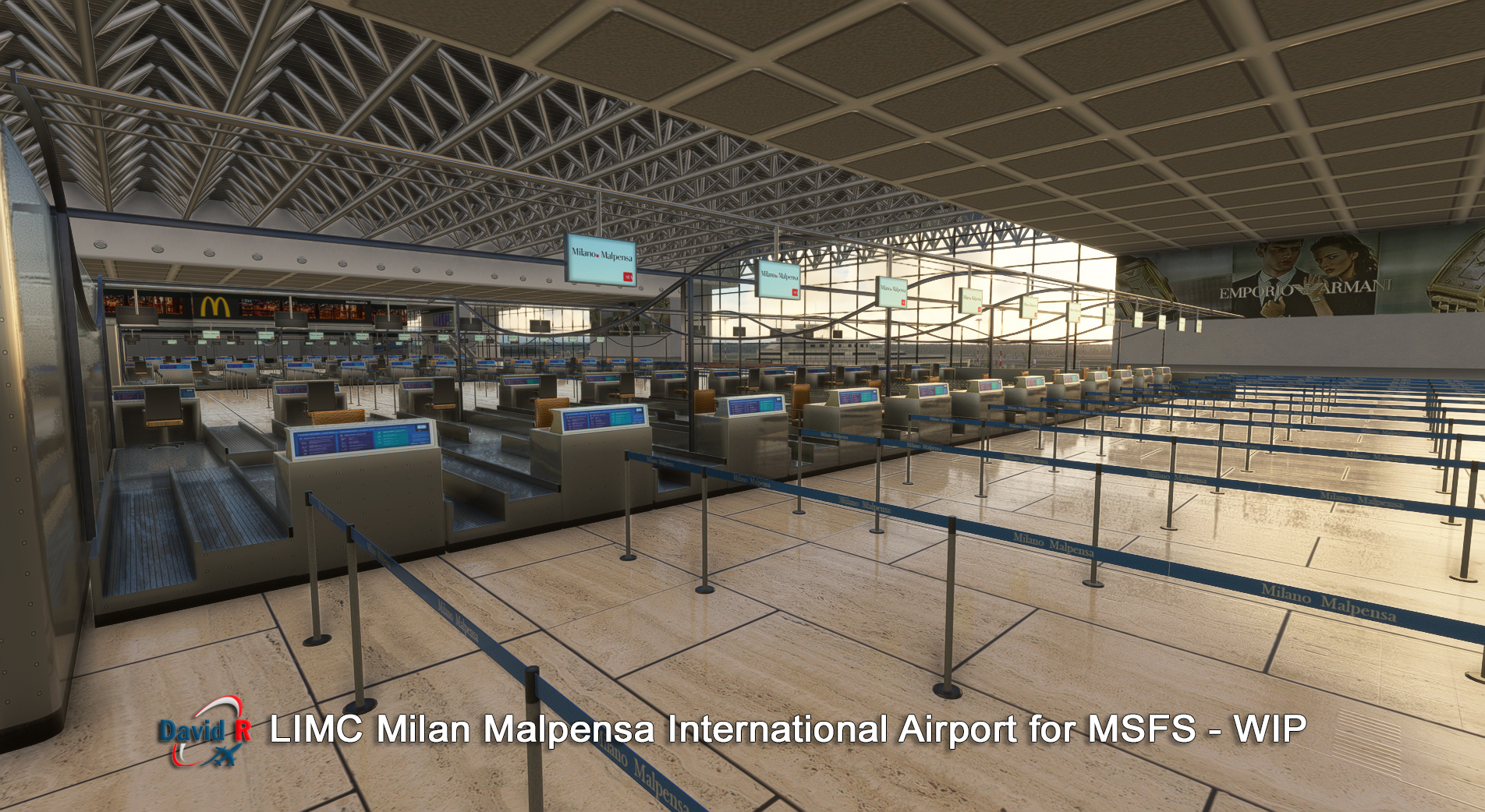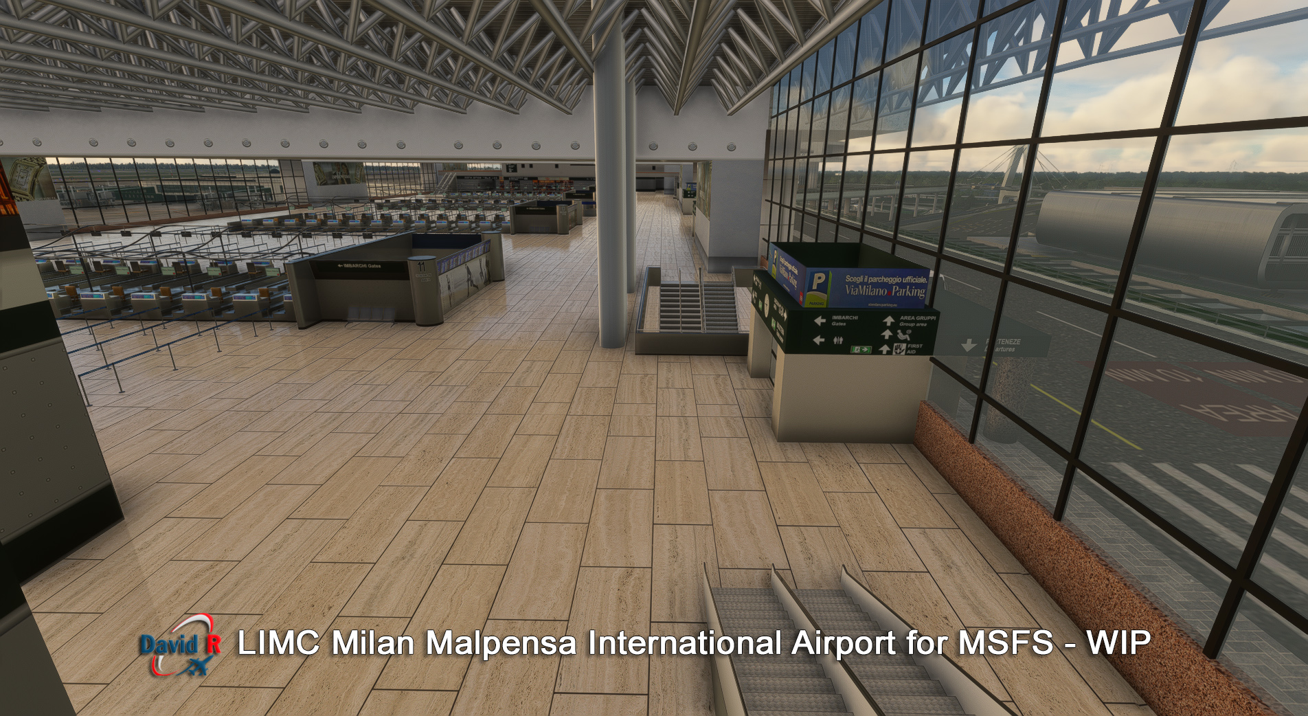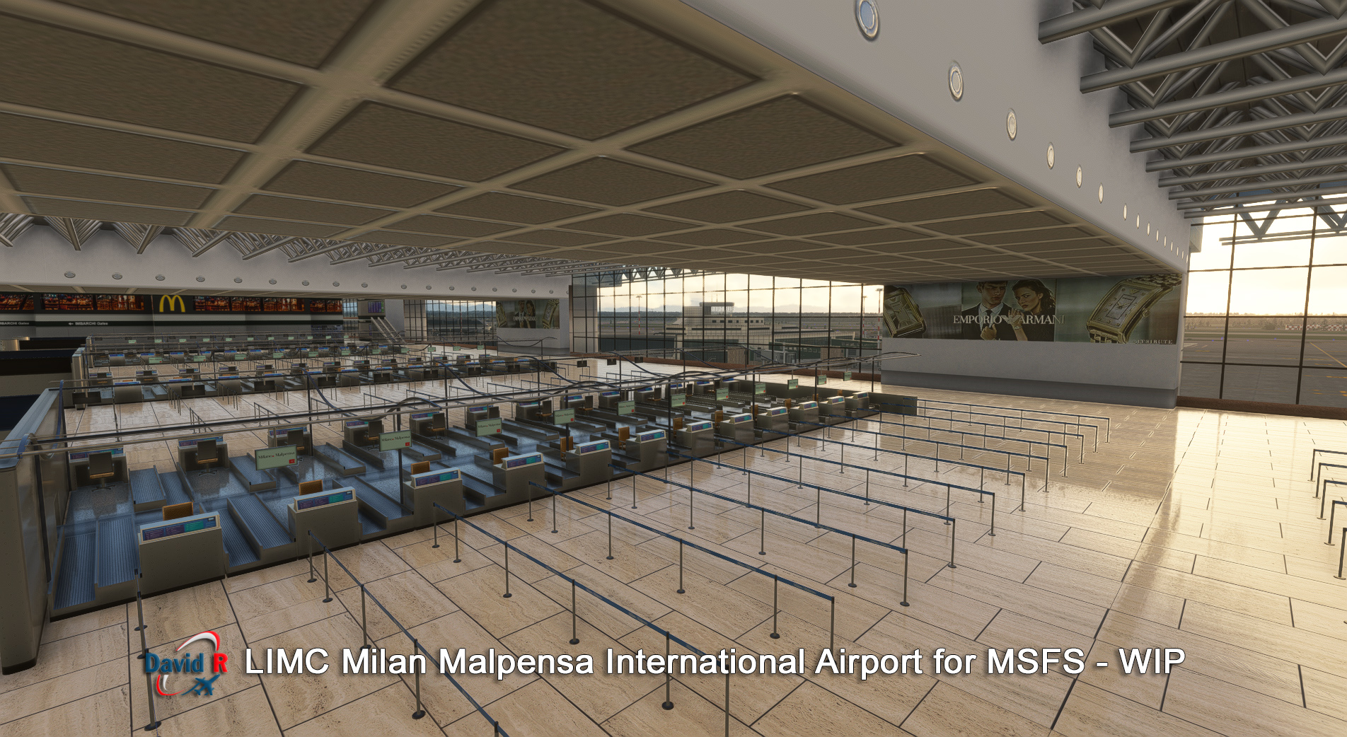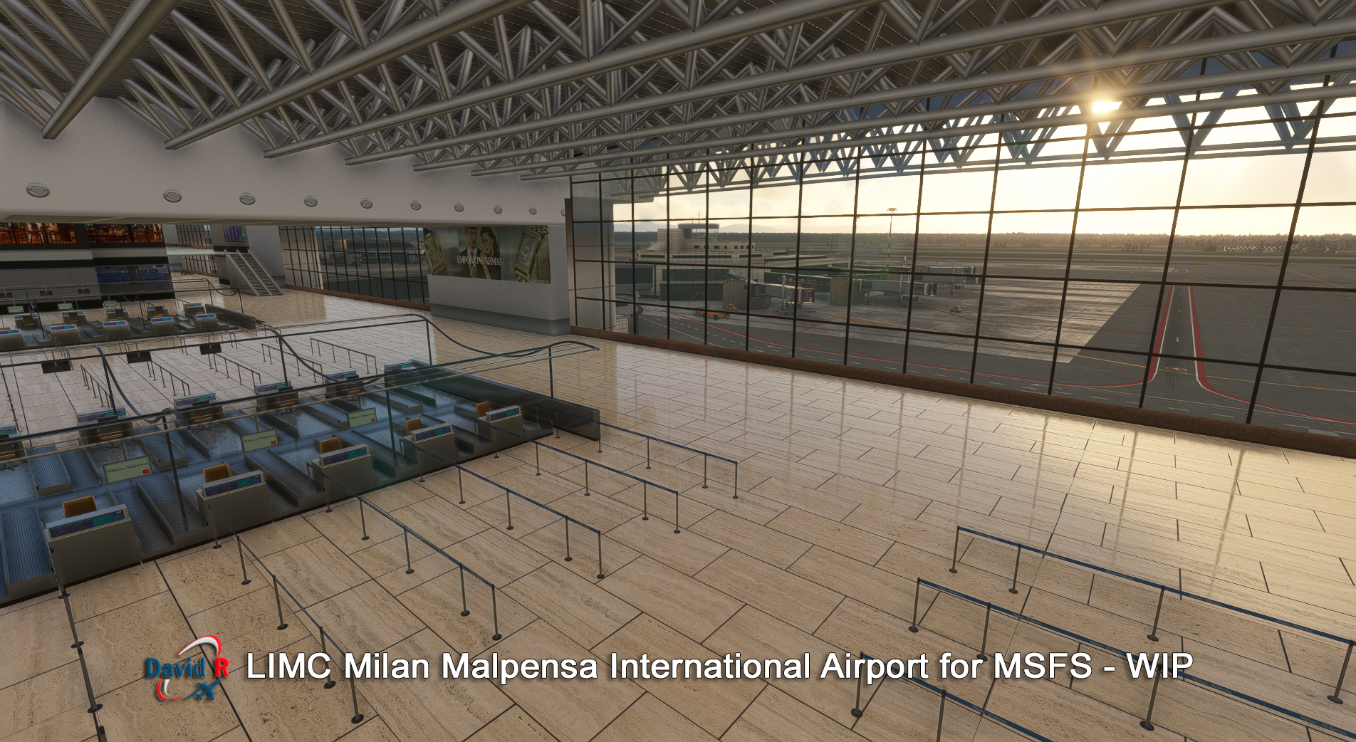 Aerosoft 和開發商 David Rosenfelt透露即將建成的米蘭馬爾彭薩國際機場 (LIMC) 的新屏幕截圖。